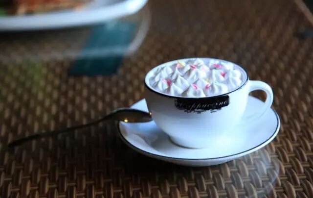 卡布奇诺由三分之一的浓缩咖啡、三分之一的蒸汽牛奶,再加上三分之一的泡沫牛奶配制而成,正宗的卡布奇诺还要在上面撒一些肉桂的粉末。咖啡味道加上香醇牛奶和可爱的奶泡,醇厚的滋味让人想到自己温馨的小家。