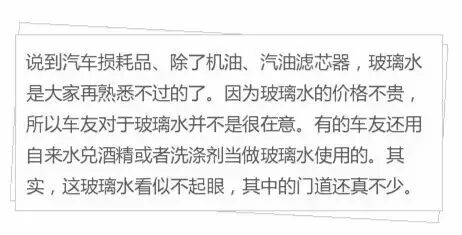 汽车保养是每一个车主都离不开的日常要务,最经常要做的就是添加、更换汽车用的各种油液,譬如机油、冷却水等等,但是说到玻璃水,却会有一些车主对此不以为然,认为加普通的水就够了,其实这样做是非常不明智的!甚至有一些车主,根本不知道有专用的汽车玻璃水。今天小编就给大家简单讲解一下。
