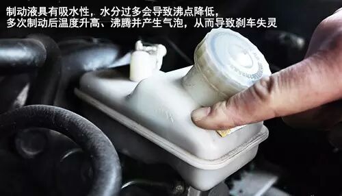 刹车油里如果有水分遇到高温就会变成气体,形成气泡,导致刹车无力,影响刹车性能。