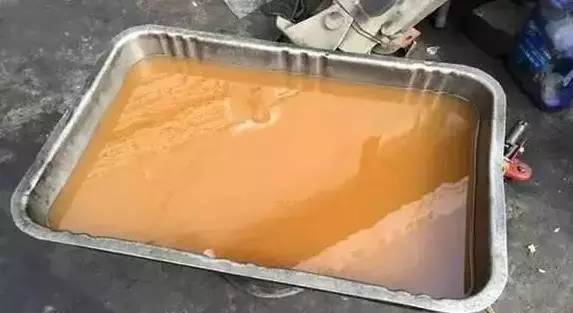 这是一位车主,行驶了四年,但是从来没有更换过防冻液,只是看见少了的时候往里添加一点。车子出了问题后,更换时发现完全是锈水,导致他的车内缸套出现了穿孔现象!