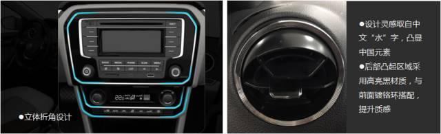 全新中控装饰板增加环形镀铬装饰,采用“立体折角”设计,提升质感。全新设计的空调出风口堪称新捷达内饰设计中的点睛之笔,“水”字造型优雅美观,且触感细腻,再现德国工匠级制造品质。