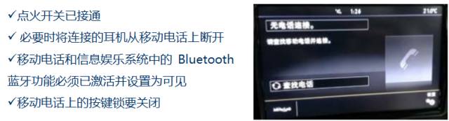 2、在打开信息娱乐系统时会自动与上次连接的移动电话建立连接。如果不能建立与此移动电话的连接,则会自动与列表已配对的下一个设备建立连接;