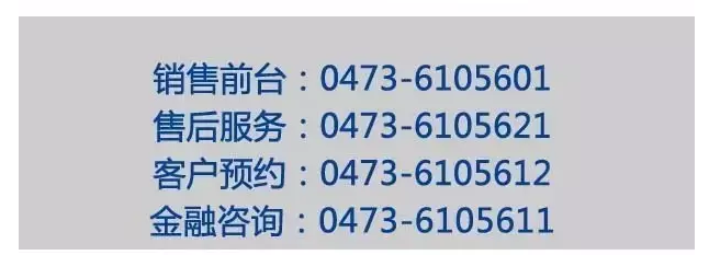 销售热线:0473—6105601 服务热线:0473-6105666 预约热线:0473-6105612