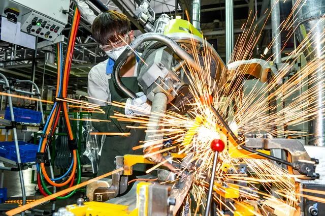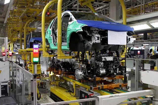 有了冲压成型的部件,接下来要经过焊装车间的焊接、涂胶、压合等工艺将车身部件拼接在一起,形成完整的车身结构。