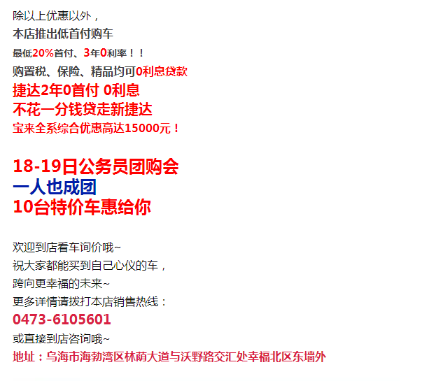 销售热线:0473—6105601 服务热线:0473-6105666 预约热线:0473-6105612