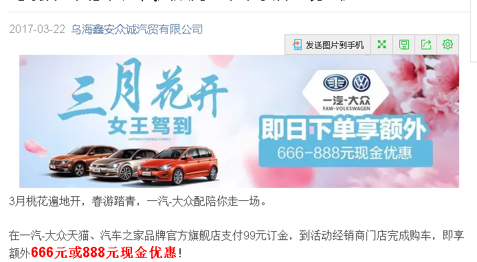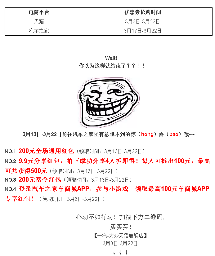 【最后一天】买一汽大众网上下单享店内现金优惠!
