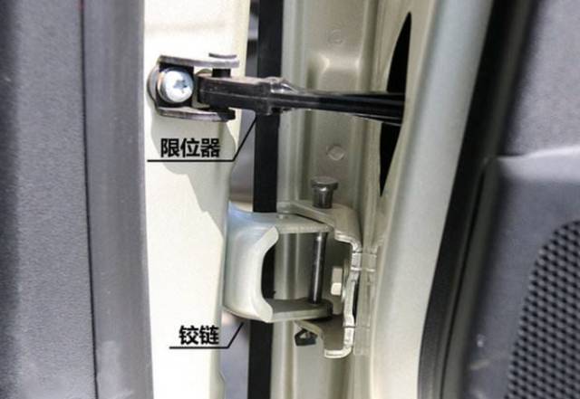 事实上,把车门和车身连接在一起的有两种零件,一个叫铰链,一个叫限位器,顾名思义,一个是固定作用,一个是限制车门打开角度和保持车门开启状态。