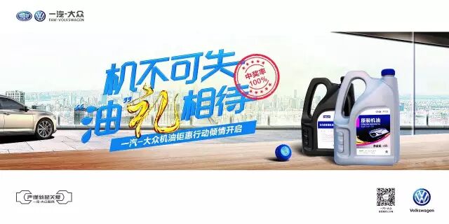 点击关注“一汽-大众售后服务”微信公众号,扫描机油瓶盖二维码即可获微信红包,百分百中奖