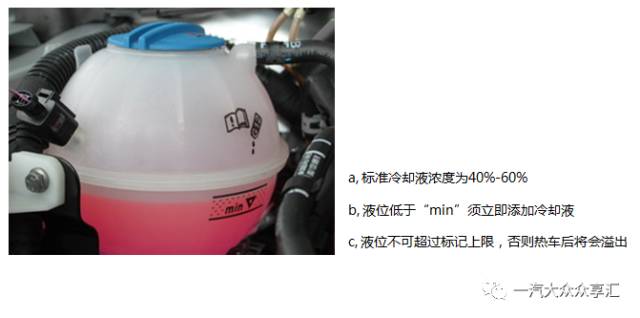 冷却液要求有较高的沸点以避免高温、高压;较强的流动性以增强冷却效果;较低的腐蚀性以避免零件的损坏。这些与冷却液浓度是分不开的。因此建议春季保养时到服务站检查冷却液的浓度,避免发动机高温及零件损坏。
