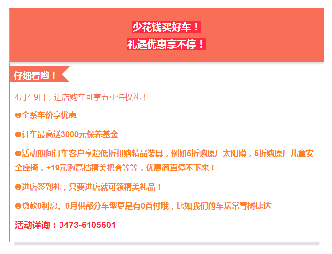 销售热线:0473—6105601 服务热线:0473-6105666 预约热线:0473-6105612