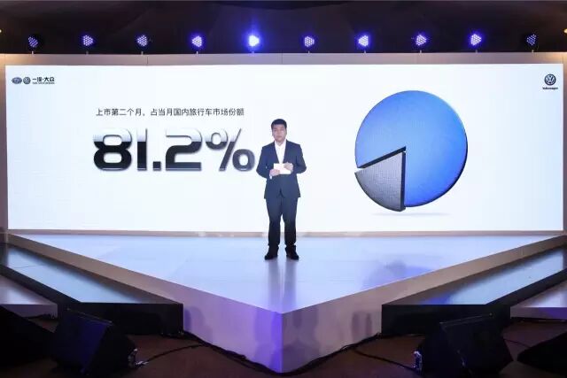 相信你们已经从视频中感受到蔚领的实力,发布会一开始,马振山就用销量说话了:今年第一季度,一汽-大众大众品牌销量达到历史新高,突破 31万 辆,蔚领尤其值得一提。蔚领去年11月份上市,到第二个月销量就占当月中国旅行车市场的 81.2% ,上市五个月终端累计销量突破 1.5万 辆,现已成为旅行车市场的 NO.1。
