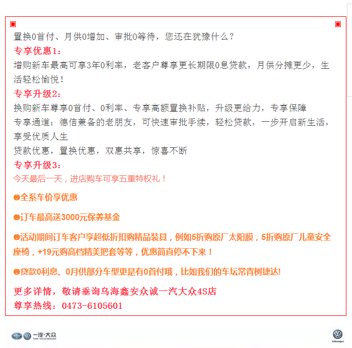 销售热线:0473—6105601 服务热线:0473-6105666 预约热线:0473-6105612