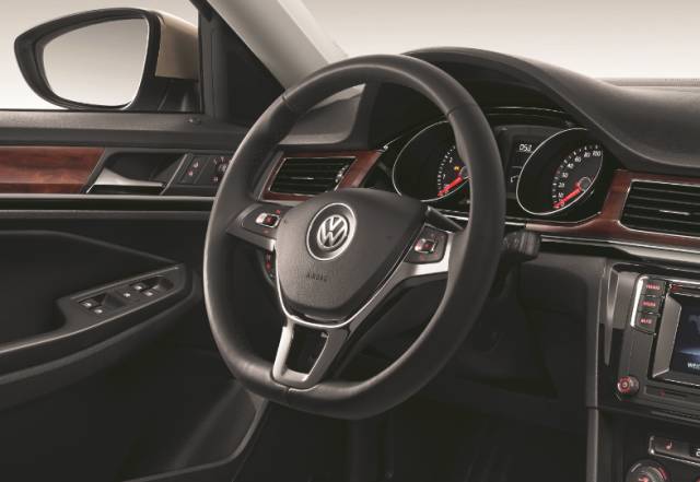 全新MQB风格方向盘,真皮包裹、高亮黑钢琴漆装饰、