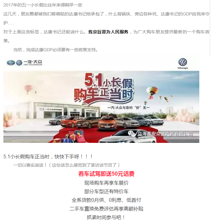 加入乌海市鑫安一汽大众4S店...