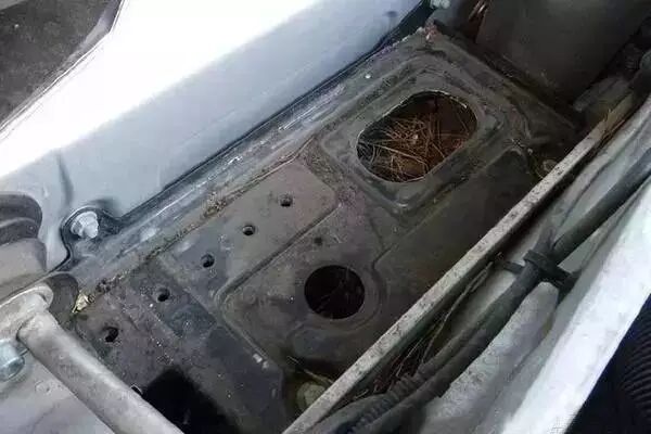 发动机舱因为部件多,清理少,所以排水孔都设计得很宽大,更容易有落叶等杂物进入。由于它离空调进气口非常近,所以闷热的机舱内容易滋生细菌,并通过空滤滤芯影响车内的空气质量。