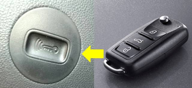 踩下制动踏板的情况下,按一下启动按钮后,立即将轿车钥匙置于右侧转向柱饰板。