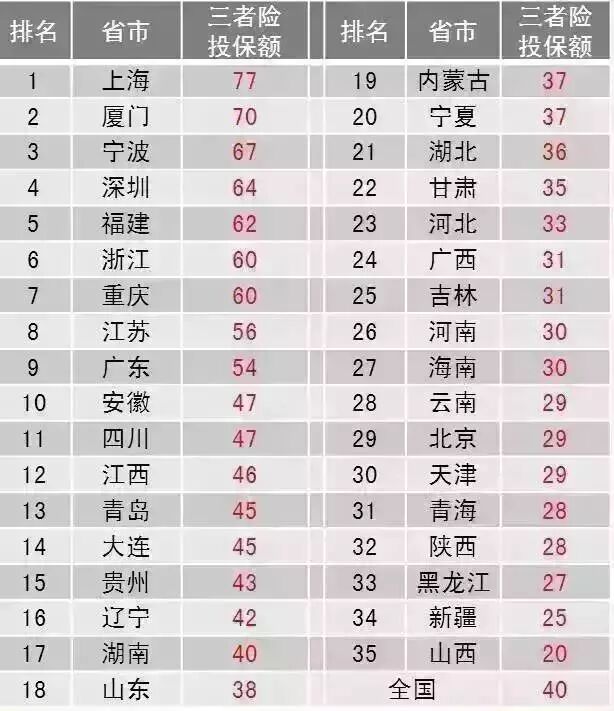 OK! 下面我们再给大家另外一个参考标准,我们身边的车主,商业三者险都是买多少钱的标准? 如下图,全国各地车主购买三者险限额的平均值。