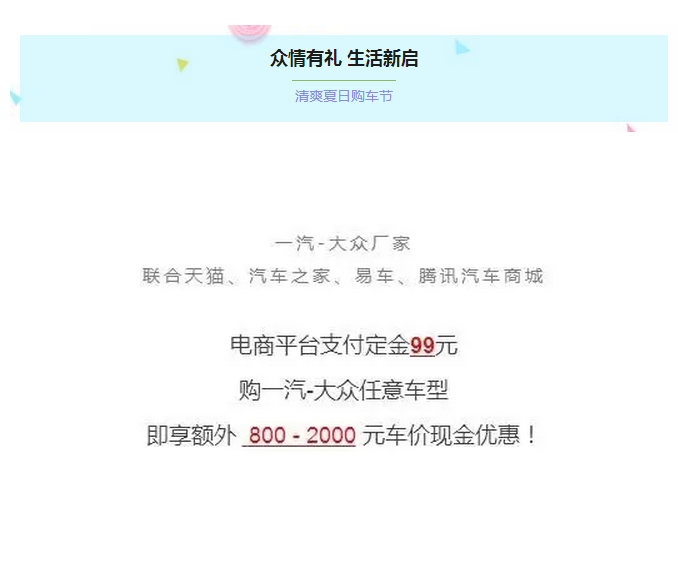 99元最高抵2000元,一汽大众电商购车节开始啦!!