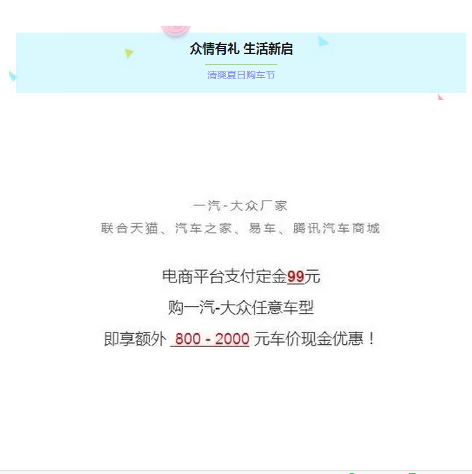 99元最高抵2000元,买一汽大众车福利就是多哦!!