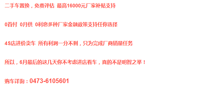销售热线:0473—6105601 服务热线:0473-6105666 预约热线:0473-6105612