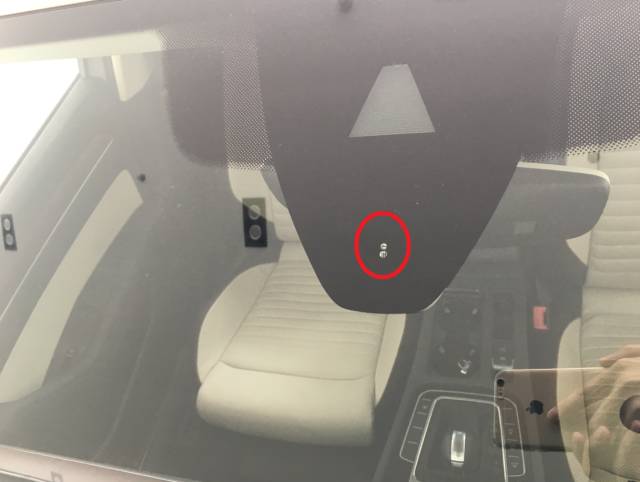 后视镜上方的前风挡上有一个雨量光线传感器: