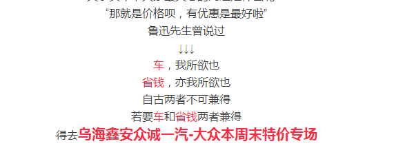 特价风暴来袭!这周末来乌海鑫安众诚一汽大众买车赚大了!