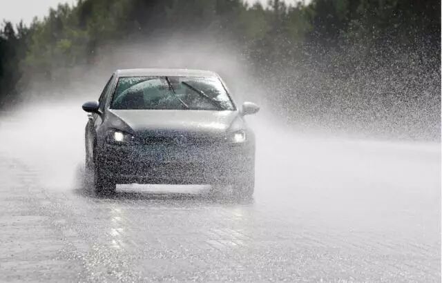 暴雨后,道路低洼处难免会有积水,盲目前行极可能造成车辆中途熄火。而车辆能否安全涉水不仅需要依靠车的“硬实力”,还需注意涉水上限一般不能超过半只轮胎的高度。此外如积水太深,切忌一时冲动盲目涉水,遇此情况需优先考虑绕行。