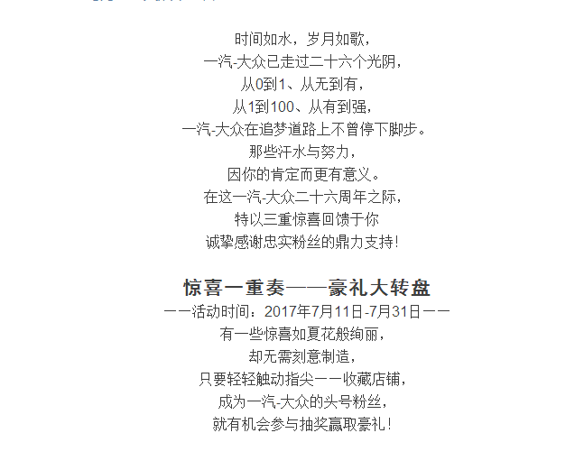 匠心永存|一汽-大众26周年感恩回馈,三重惊喜嗨翻一夏!
