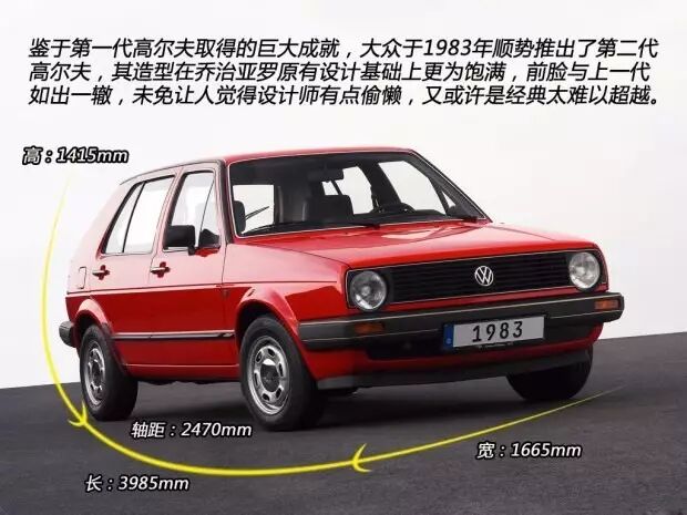 1983年8月份,第二代大众高尔夫顶着初代的光环诞生了,在外观设计上,大众几乎没有对高尔夫标志性的前脸做任何“整容手术”,只是对其“丰了丰臀”,车尾的设计比之前厚实了很多,年轻中增加了一点稳重感,尾灯和后牌照被上移到紧贴后窗的位置,使第二代高尔夫有种“翘臀”的感觉,新样式的尾灯也更加紧凑,视觉效果更加饱满。同时,轴距和后备箱的尺寸也进一步加大,重新设计的扭力梁也大大增加了车辆在行驶中的稳定性。