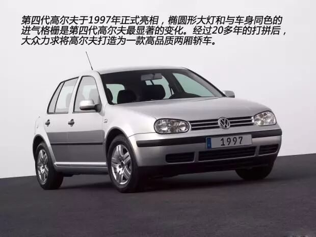 可以说,高尔夫第四代是让其走上神坛的一款重要的车型,1997年,大众公司在前三代高尔夫成功的基础上,再一次对其进行“美容整形”——椭圆形大灯和车身同色的进气格栅的改变,成为第四代高尔夫最亮眼的地方,内饰空间更加的宽敞,驾乘的舒适度有了进一步的提升。而大众的目标也已经不仅仅是要做一款简单的“国民车”了,而是力求将高尔夫打造成高品质的紧凑型两厢车,进而进化为“全球车”。