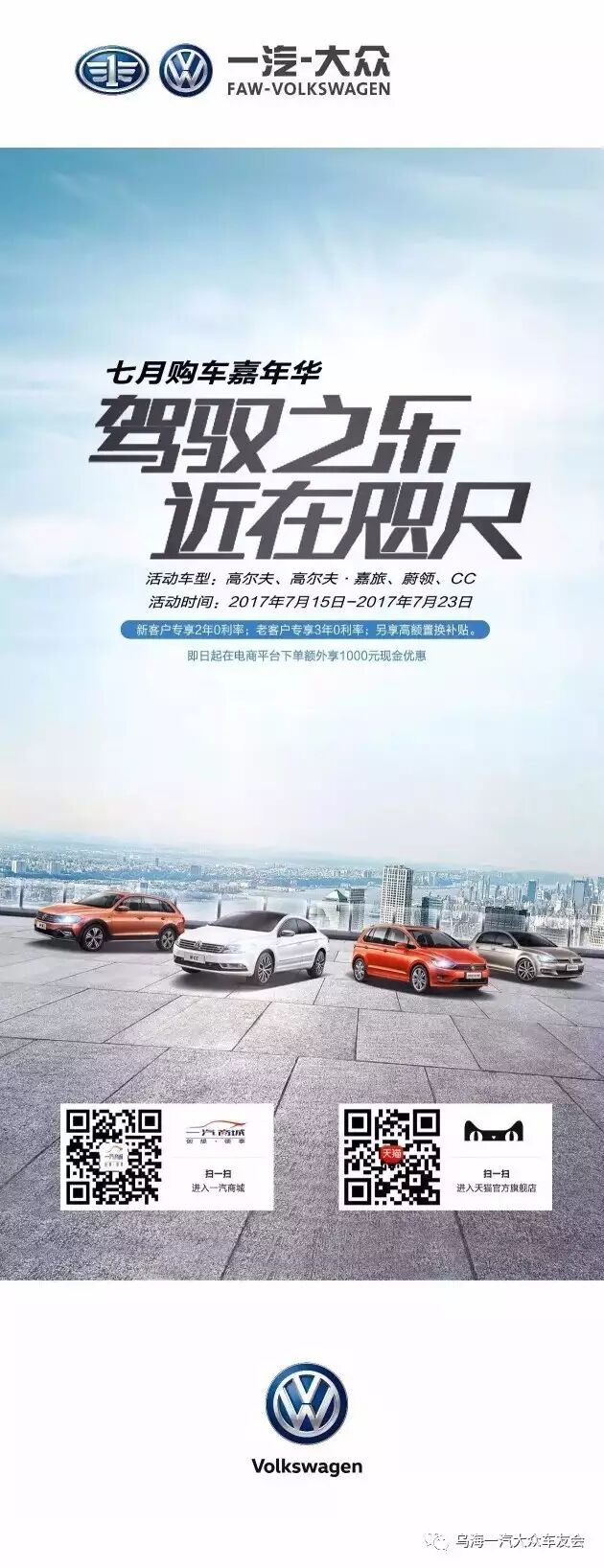 活动车型:高尔夫A7;高尔夫·嘉旅;CC;蔚领