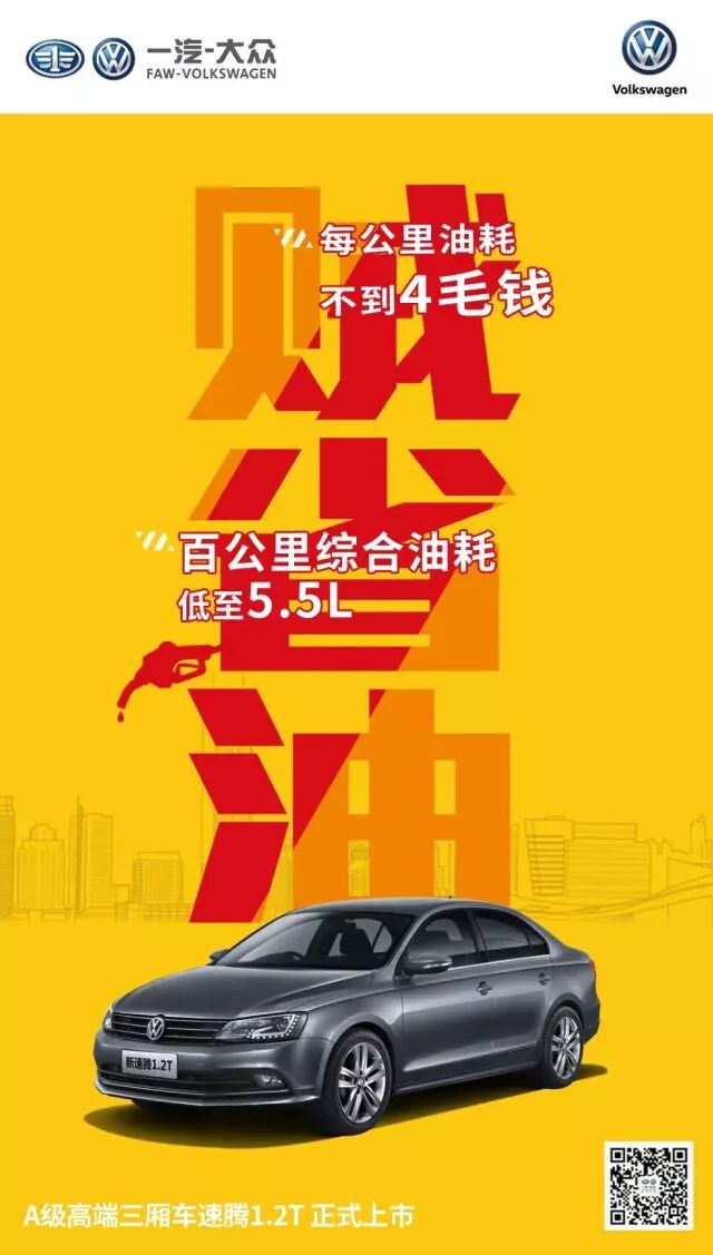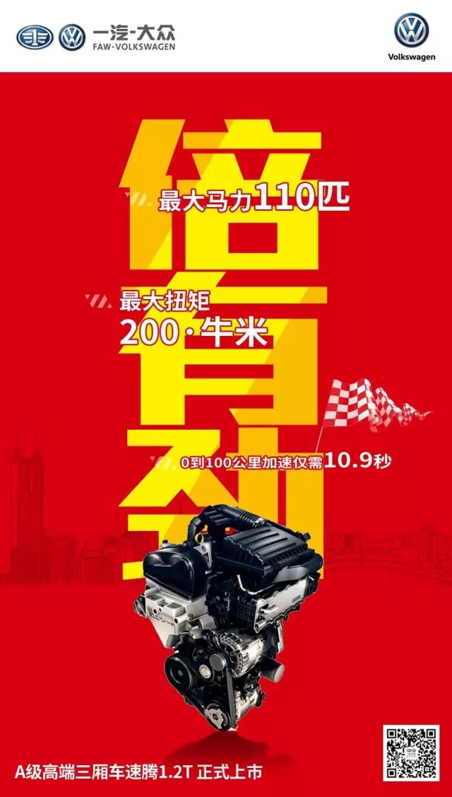 A级高端三箱车速腾1.2T的上市却完美兼顾了这一矛盾体,TSI+DSG黄金动力组合新成员,实现了小排量、大扭矩,油耗动力两者兼!为消费者带来更快加速、更低油耗的A+级三厢轿车!
