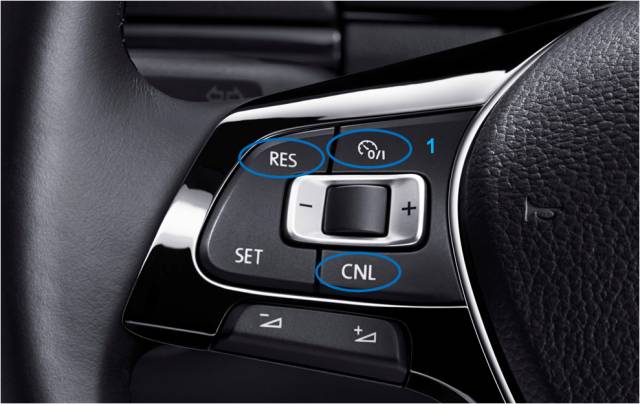 步骤2. 按压多功能方向盘上的按钮RES,恢复巡航;