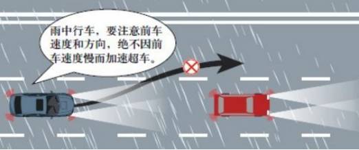 尽量保持直线行驶,避免超车变道。雨天路滑,高速变向时车辆易发生侧滑。所以驾驶员要双手平衡把握转向盘,直线行驶;