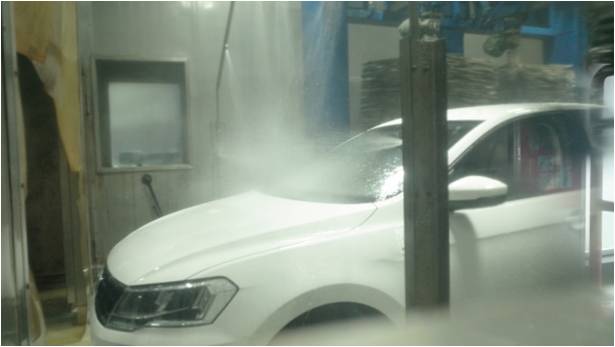 捷达在路试合格后,还需要在淋雨间进行严格的淋雨试验。淋雨间采用全自动喷淋检测,这是国内技术最先进和最高效的整车密封性检测设备,每分钟每平方米的喷淋量在25L以上。在整个实验过程中,捷达车内不能出现任何渗漏。正是通过这项实验,确保了捷达能够轻松应对各种暴雨天气。