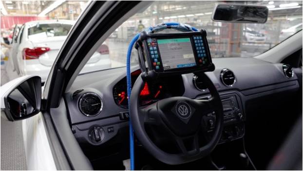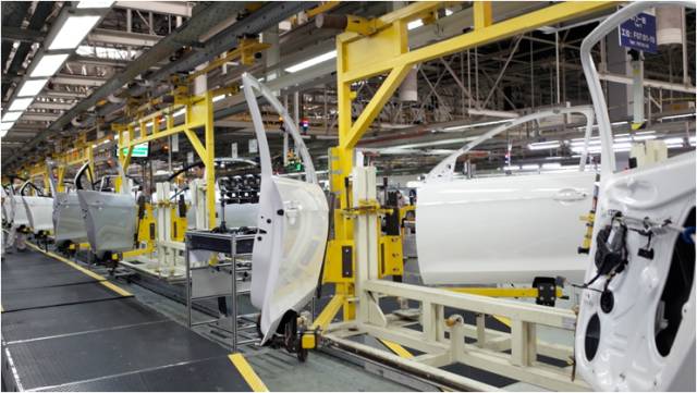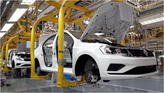 捷达在装配的过程中,驾驶模块、动力总成模块、前端模块和车门模块等会预先分装好,然后再依次装到整车上。