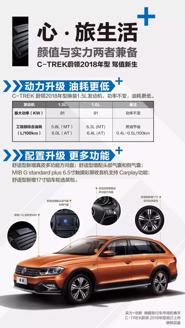 在蔚领日益拔高的销量的激发下,越来越多的车企开始重视旅行车市场,各个品牌的跨界旅行车也开始陆续进入这片蓝海。一汽-大众蔚领也顺势推出2018年型,对车辆动力及配置进行了“焕芯”升级。