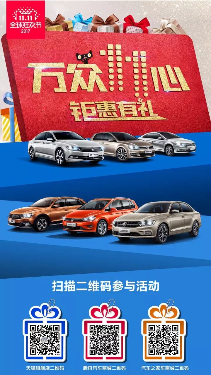 2、一汽-大众天猫旗舰店与汽车之家、腾讯的参与方式略有不同,抢拍前请仔细阅读说明,根据说明步骤抢拍,成功抢拍后到店购车时,出示验证码,即可享受优惠以及对应礼品!