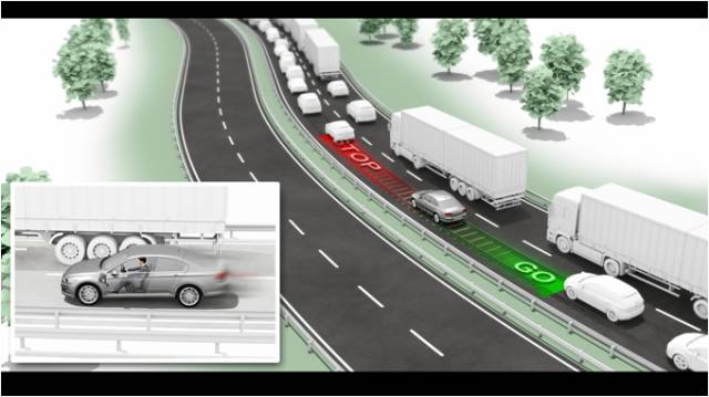 车辆可以该系统对处于堵车状态的前车做出反应,半自动进行制动、加速和转向,在频繁起步停车的交通中为您提供舒适性。