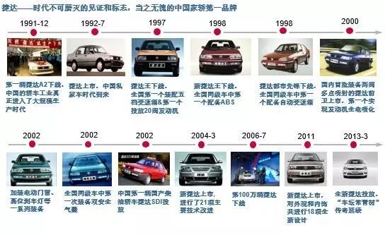 一路走来,捷达在市场上不断被认可和尊重,正如一位捷达车主、摄影师张羽说:"记得我在买第一台相机的时候,选了机械相机尼康FM2。尽管那个时候电子化的镜头已经普及,但我依然选择更为可靠的产品。这也来源于 家里第一辆捷达车给我的认识——可靠的性能远比繁多的功能更重要。而捷达对于我,也不仅仅是一辆车,更多的是一种生活态度的折射。"1991年捷达A2作在长春投产下线,很快便风靡全国;1997年5月,首台装备五气门发动机的捷达王正式下线;2004年3月25日新捷达上市;2013年3月,一汽-大众全新捷达上市。