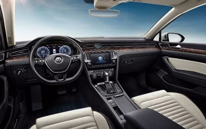 打开车门进入到车内,弥漫着的,依然是大众那种熟悉、低调的商务气息。经过轴距的拉长,足以媲美C级车的车内空间,Nappa打孔真皮浅色座椅配深色内饰、天然纹理桃木饰板、搭配充满商务气息的钟表,让尊贵气息更加突出。