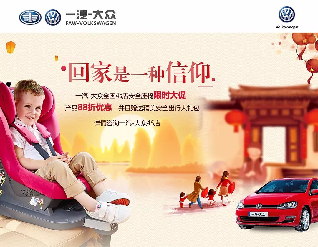 在春节返乡高峰到来之际,凡2月15日之前到一汽-大众乌海鑫安众诚4S店即可享受88折优惠,并有好礼相赠。用高标准给宝宝高质量的保护,让回家之路更加舒心。