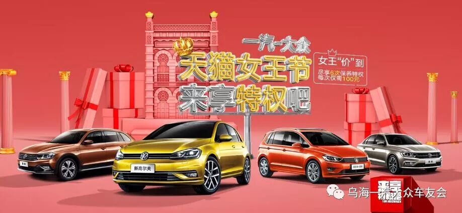 一汽-大众开启女王“价”到活动,在天猫、汽车之家平台支付599元订金,凭短信验证码,到乌海鑫安众诚一汽-大众经销商核销并签订保养合同,完成购车,可享最多3年6次基础保养(客户价值2000元)(数量有限,先到先得)
