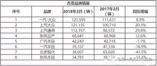 2月八大合资品牌销量盘点 一汽-大众登榜首!