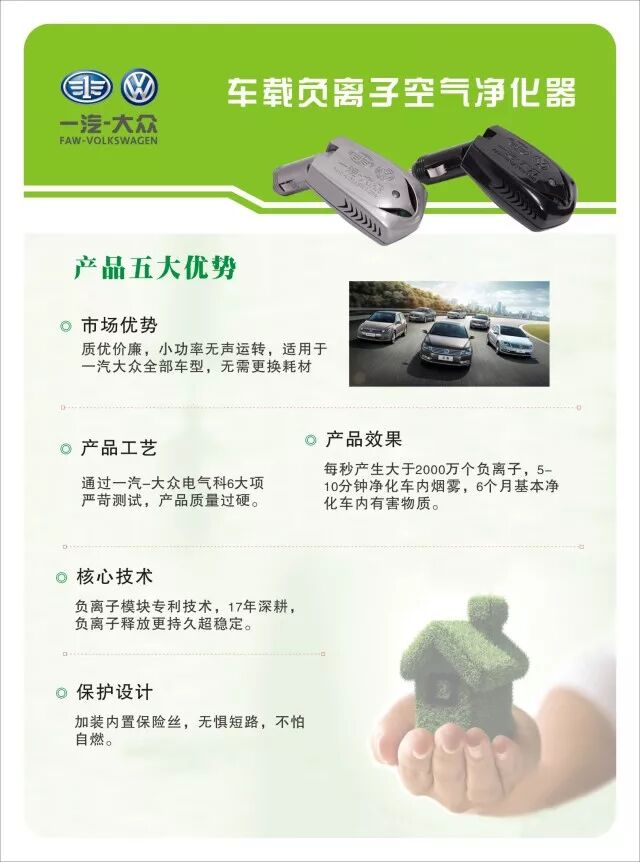 一汽-大众原装附件车载负离子空气净化器、空调清洗剂、空调滤芯!原装套餐更洁净、更安全!