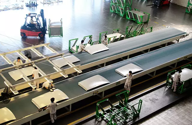 总装车间是佛山工厂面积最大的车间,12.6万平方米的占地面积有将近20个足球场之大。先进的“h”形规划布局和超市方式的零部件物流,缩短了物流距离,提高了物流效率。