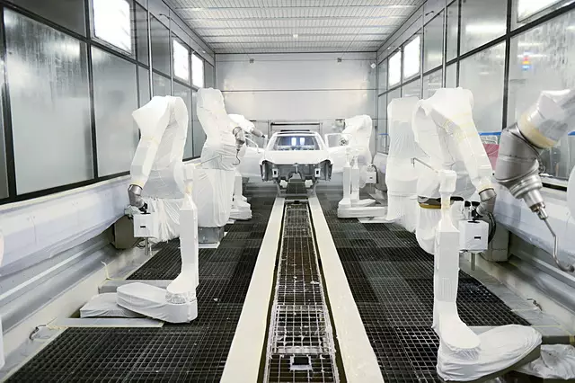 由于涂装过程中应用了E-shuttle前处理电泳穿梭机,车身在处理时会360°旋转浸渍,提高电泳质量,每一处都形成一层致密的电泳漆膜,让车身更美观耐用,每一处细节都能防腐、防锈、抗石击,油漆附着更牢固。