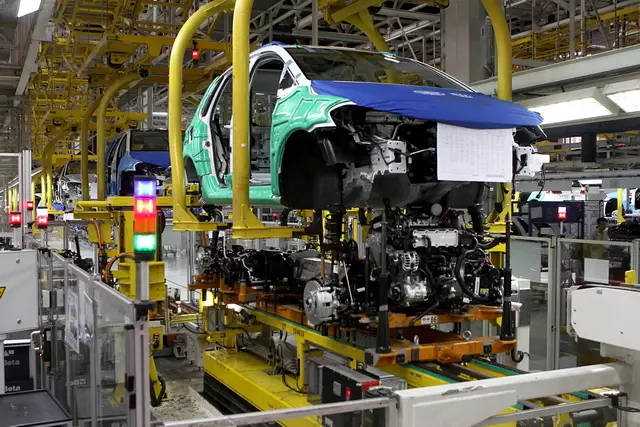 有了冲压成型的部件,接下来要经过焊装车间的焊接、涂胶、压合等工艺将车身部件拼接在一起,形成完整的车身结构。