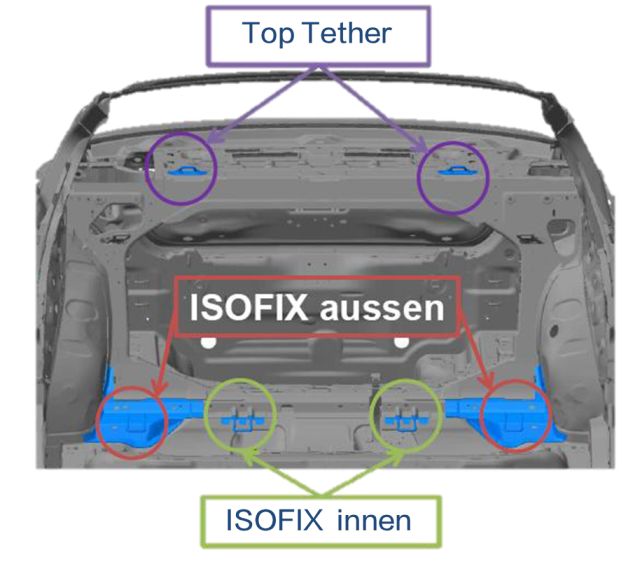 全系标配两套兼容欧标和美标带TOP Tether上部第三固定点的ISOFIX儿童座椅固定装置,可将儿童座椅与车身紧密固定在一起,可在危险发生时最大化的保护车内儿童的乘坐安全