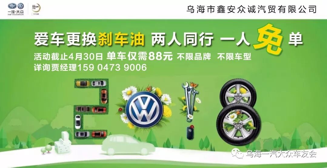 两人同行,一人免单! 活动时间:4月1号—4月30日 活动地点:乌海鑫安众诚一汽-大众4S店活动介绍